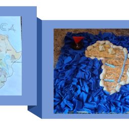 Kontinente durch Upcycling entfremdet und künstlerisch dargestellt. Im Gegensatz zum klassischen Recycling werden hierbei scheinbar nutzlose Abfallprodukte wiederverwendet, um das Kunstwerk aufzuwerten.